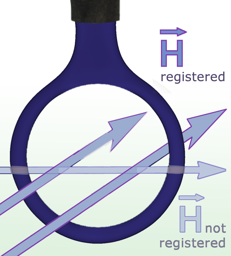 The LF-R 400 is a passive near-field probe. With its large tip diameter (25 mm), it is more sensitive and thus is able to detect a greater area of the magnetic field than the LF-R 50 (10 mm) or LF-R 3 (3 mm) near-field probes, which both have higher resolutions than the LF-R 400. This probe is small and handy. It has a current attenuating sheath and, therefore, is electrically shielded. It can be connected to a spectrum analyzer or an oscilloscope with a 50 Ω input. The H-field probe does not have an internal terminating resistance of 50 Ω.