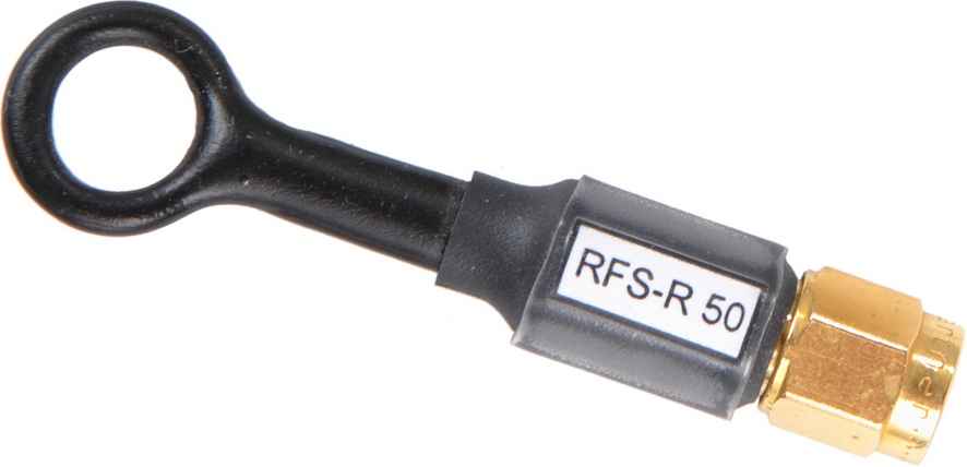 The RFS-R 50 is a passive near-field probe. It has a sheath current attenuation and is electrically shielded. It can be connected to a spectrum analyzer or an oscilloscope with a 50 Ω input. It does not have an internal terminating resistance.