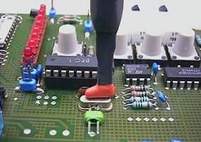 | ES 05D couples an electric field to a quartz crystal oscillator housing to test the sensitivity of the associated IC connections. Depending on the IC manufacturer, the quartz crystal oscillator connections of ICs can be very sensitive to electric field. |