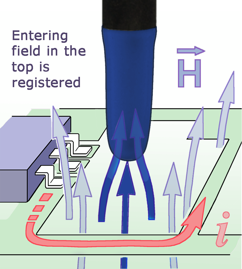 The LFS-B 3 is a passive near-field probe for use in a scanner to measure magnetic field during development. The LFS-B 3 detects magnetic field lines emitted from the measured object at 90°. Magnetic field lines which enter the probe laterally are not detected. The near-field probe is small and handy. It has a current attenuating sheath and is, therefore, electrically shielded. It can be connected to a spectrum analyzer or an oscilloscope with a 50 Ω input. The H-field probe does not have an internal terminating resistance of 50 Ω.