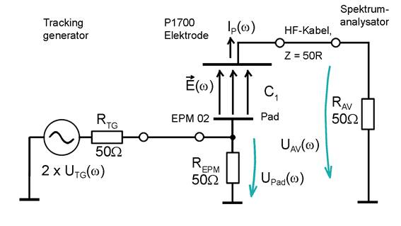 An RAV des Spektrumanalysators (Bild 13) entsteht die Spannung UAV(ω). Sie wird vom Spektrumanalysator gemessen und dargestellt. Nach Gl 10 ist UAV(ω) gleich der im Stromleiter der Sonde induzierten Spannung Uind(ω).