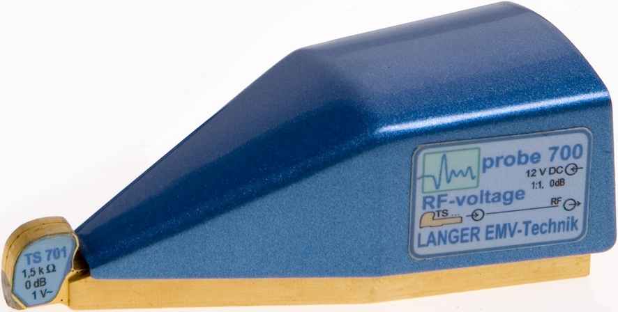 The voltmeter is used to measure the conducted electromagnetic emissions of integrated circuits in accordance with IEC 61967. The RF voltage is measured directly on the IC pin with a 150 Ω coupling network. The coupling network is integrated in the TS 751 probe tip.