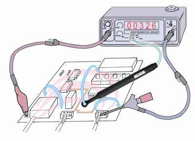 The surface of the E field source head allows the extensive coupling into housing surfaces and interior areas, connection technology and assemblies with conducting path structures and ICs ( e.g. bus systems, LCD displays). Furthermore its tip can be used for the localization of small E- field sensit…